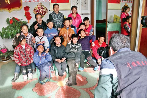 近日,原平市文明辦、市文聯(lián)組織攝影愛好者下基層開展“迎春送祝?!被顒?dòng),對(duì)全市模范、身邊好人進(jìn)行了走訪慰問,并為他們拍攝了全家福照片。圖為攝影愛好者為2014年中國(guó)好人、山西省第四屆道德模范陳天文、郭改然夫婦免費(fèi)拍攝全家福照片。(褚震 攝)