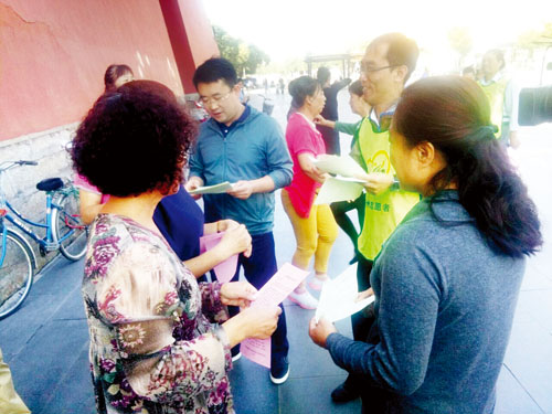 9月7日上午,共青團(tuán)忻州市委組織青年志愿者走上街頭,撿垃圾、清理小廣告、為市民發(fā)放創(chuàng)衛(wèi)宣傳資料,用自己的實際行動倡導(dǎo)大家一起愛護(hù)環(huán)境,講究衛(wèi)生,養(yǎng)成良好的生活衛(wèi)生習(xí)慣,加入到我市創(chuàng)衛(wèi)的行列中來。圖為青年志愿者在古城廣場向過往市民發(fā)放創(chuàng)衛(wèi)宣傳資料。(張志遠(yuǎn) 攝)