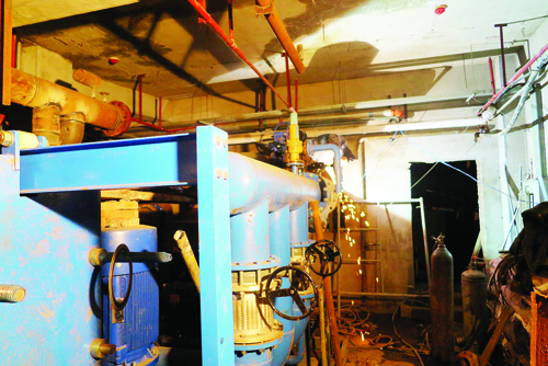 圖為供熱站工人加班加點(diǎn)進(jìn)行站內(nèi)改造
