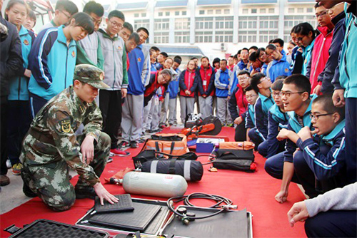 此次演練活動分四個階段:消防安全知識培訓(xùn)、人員疏散逃生、初期火災(zāi)撲救、特種消防器材展示?;顒蝇F(xiàn)場,消防官兵講解、演示了發(fā)生火災(zāi)時應(yīng)如何疏散逃生、如何撲救初起火災(zāi)、滅火器的使用方法及注意事項等與師生們息息相關(guān)的消防安全知識,提高了大家自防自救意識,學(xué)校師生代表還親自體驗了如何使用干粉滅火器滅火,了解了初期火災(zāi)的撲救方法。