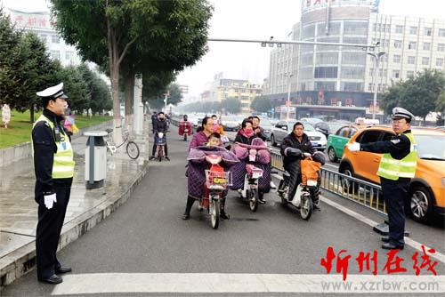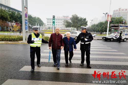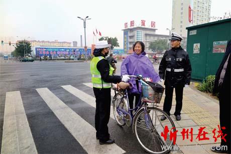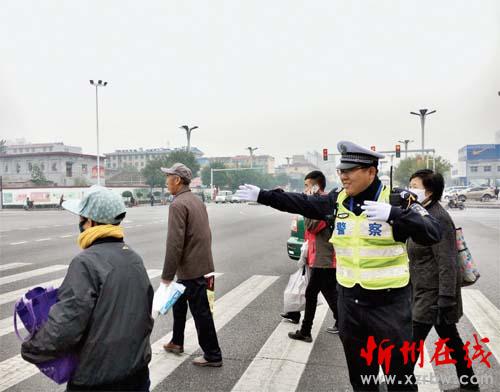 圖四:10 月15 日,交警在七一路與利民街十字路口引導(dǎo)行人過(guò)馬路