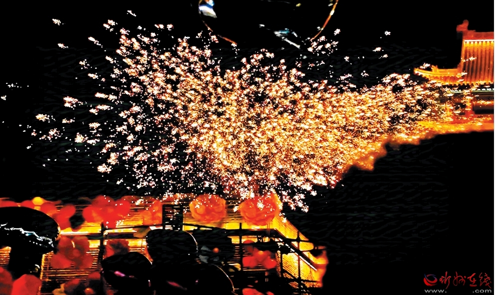 打鐵花、氣球雨、煙花秀、文藝表演……2024年12月31日晚,華燈初上,忻州古城被節(jié)日的歡樂氛圍籠罩,豐富多彩的迎新活動,讓市民沉浸其中。隨著“五、四、三、二、一”全場倒計時結束,頃刻間,無數(shù)個彩色氣球被放飛,煙花隨之綻放,無數(shù)人在此度過了一個難忘的跨年夜。圖為震撼人心的打鐵花表演。(記者 趙丹琦攝)