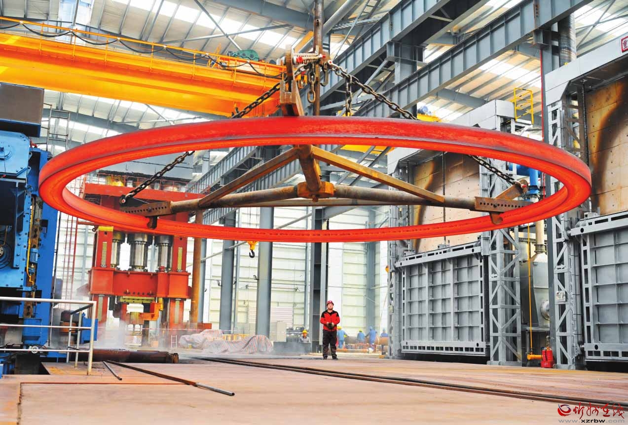 山西瑞德重工有限公司法蘭鍛造生產(chǎn)現(xiàn)場。 本報記者 陳勇升攝
