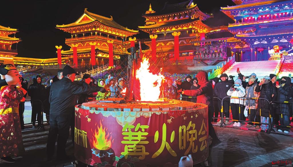 春節(jié)假期,繁峙縣憨山文化旅游景區(qū)熱鬧非凡,一系列豐富多彩的民俗活動(dòng)與新春特色項(xiàng)目,吸引了眾多游客前來觀賞游玩。圖為篝火晚會(huì)上,游客們圍聚在篝火旁,牽手起舞,樂享其中。(鐘昱星攝)
