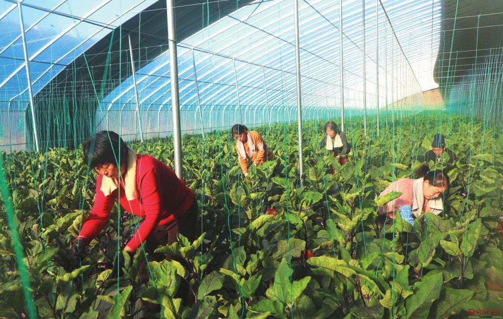3月18日,原平市北城街道沙晃村同興現(xiàn)代農業(yè)園區(qū),農民正在日光溫室大棚采摘茄子。近年來,沙晃村立足城郊融合性鄉(xiāng)村優(yōu)勢,加快推進高標準冬暖式日光溫室大棚建設,采取“公司+合作社+農戶”的運營模式,打造“新品種、新技術、新模式”的農業(yè)產業(yè)園區(qū),發(fā)展特色蔬菜產業(yè),帶動農民增收致富。(褚 震攝)