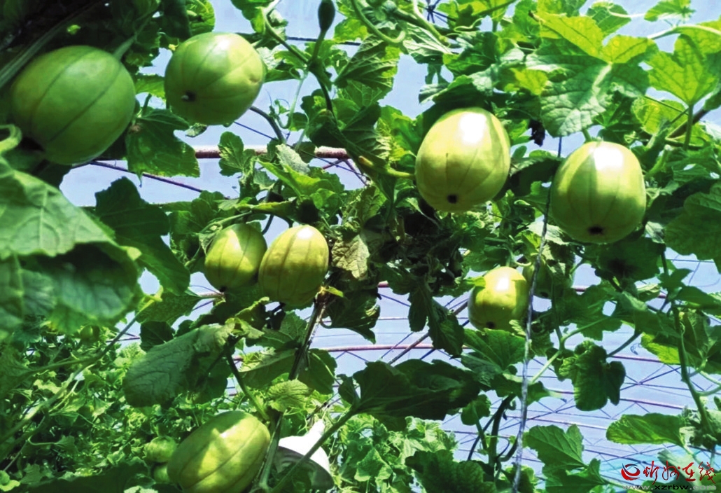 圖為忻府區(qū)金山鋪大棚香瓜長(zhǎng)勢(shì)喜人。