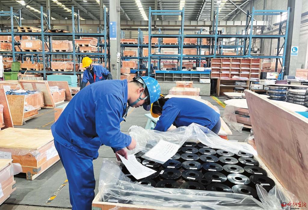 山西管家營法蘭鍛造股份有限公司嚴格管理、科學生產(chǎn),通過設備升級與技術(shù)創(chuàng)新,為企業(yè)發(fā)展注入新動能。圖為員工對外銷產(chǎn)品進行檢測登記。(郭晶晶 劉婧攝)