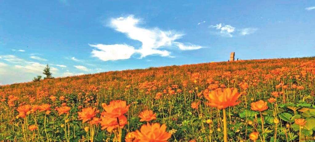 仲夏時節(jié),五臺縣駝梁風景區(qū)金蓮花盛開,獨特的自然風光和涼爽的氣候吸引眾多游客前往休閑旅游。 (