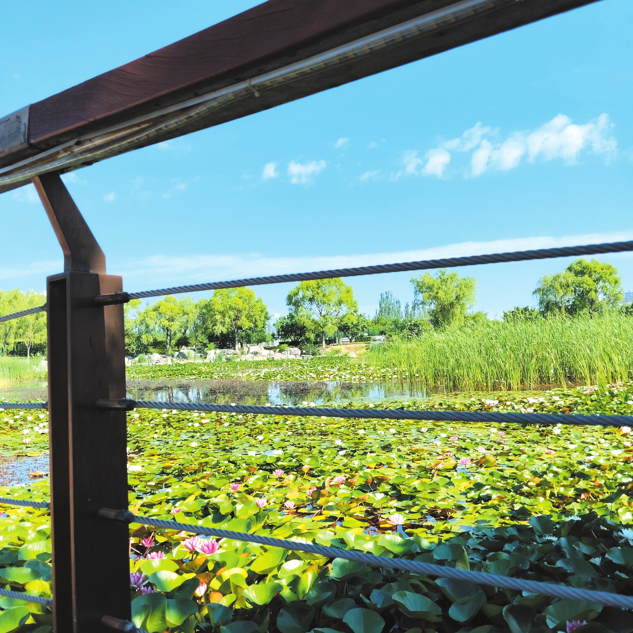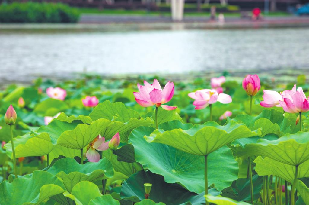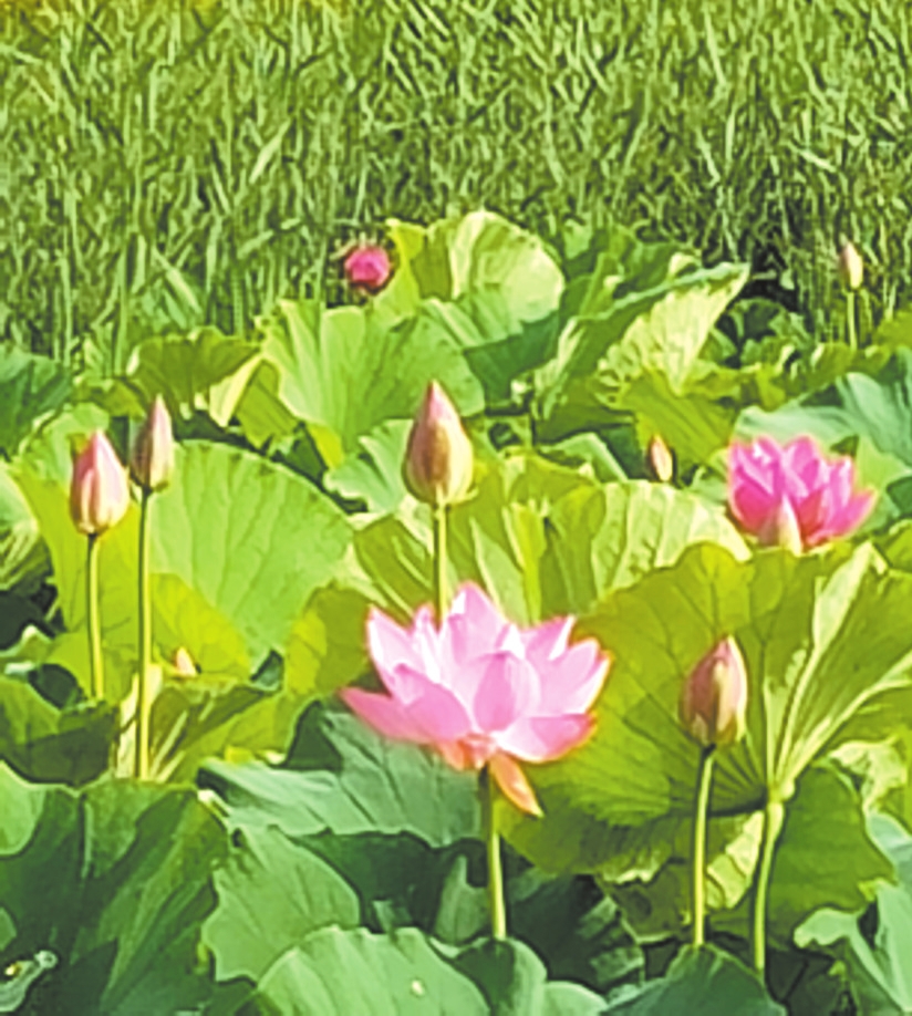 夏荷 七月的云中河,把夏的浪漫都揉進了一塘荷里。 晨霧未散時,“綠云”先漫過了河岸——層層疊疊的荷葉浮在水面,像被風(fēng)吹過的綢緞,葉尖凝著的荷露,是天空落進人間的碎鉆。粉白的荷從“綠云”里探出頭,半開的像未寫完的詩箋,盛放的似被陽光吻過的笑靨,連風(fēng)掠過時都輕了三分,怕驚碎這池溫柔。 日頭爬高些,荷香便成了游走的信差。它鉆進小橋的縫隙,沾了點煙火氣;繞著岸邊的樹枝打旋兒,裹了絲蟬鳴;最后停在賞荷人的面前,令人心醉。