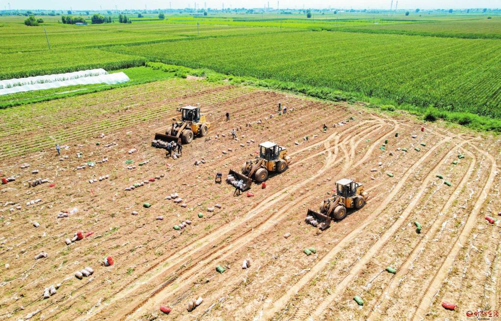 7月25日,農(nóng)機(jī)手駕駛鏟車在忻府區(qū)北肖村的田里收獲土豆。盛夏時(shí)節(jié),我市農(nóng)民搶抓農(nóng)時(shí),做好農(nóng)作物的田間管理和采收。 (記者 范琛攝)