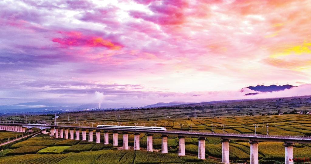 鐵路部門充分發(fā)揮高鐵運輸優(yōu)勢,針對客流需求,采取動車組重聯、增開周末高峰線列車等方式,持續(xù)完善運輸服務舉措,全面提升旅客出行的便捷性與舒適度。圖為夕陽下駛向雁門關站的動車組列車。(王晉東攝)