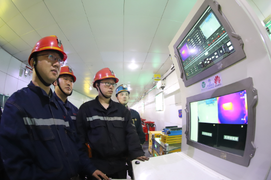 機(jī)電硐室燈光明亮,在一段120米的頭頂軌道上,一個(gè)小小的5G機(jī)器人正在來(lái)回移動(dòng),進(jìn)行360度視頻監(jiān)測(cè)、音頻采集、紅外熱成像?!斑@是無(wú)人巡檢機(jī)器人,還能精準(zhǔn)記錄設(shè)備故障發(fā)生的時(shí)間、地點(diǎn)以及參數(shù)。通過(guò)5G網(wǎng)絡(luò)回傳到數(shù)據(jù)中心?!毙略旱V5G智能化辦公室主任冀杰說(shuō),原來(lái)配電室都是靠人檢查,憑的是經(jīng)驗(yàn);但機(jī)器可以24小時(shí)巡查,不是人力可以比的。“巡檢機(jī)器人代替人在井下巡檢的意義在于,可以逐步實(shí)現(xiàn)井下減人、少人,實(shí)現(xiàn)煤礦安全生產(chǎn)和效益雙贏?!?/span>