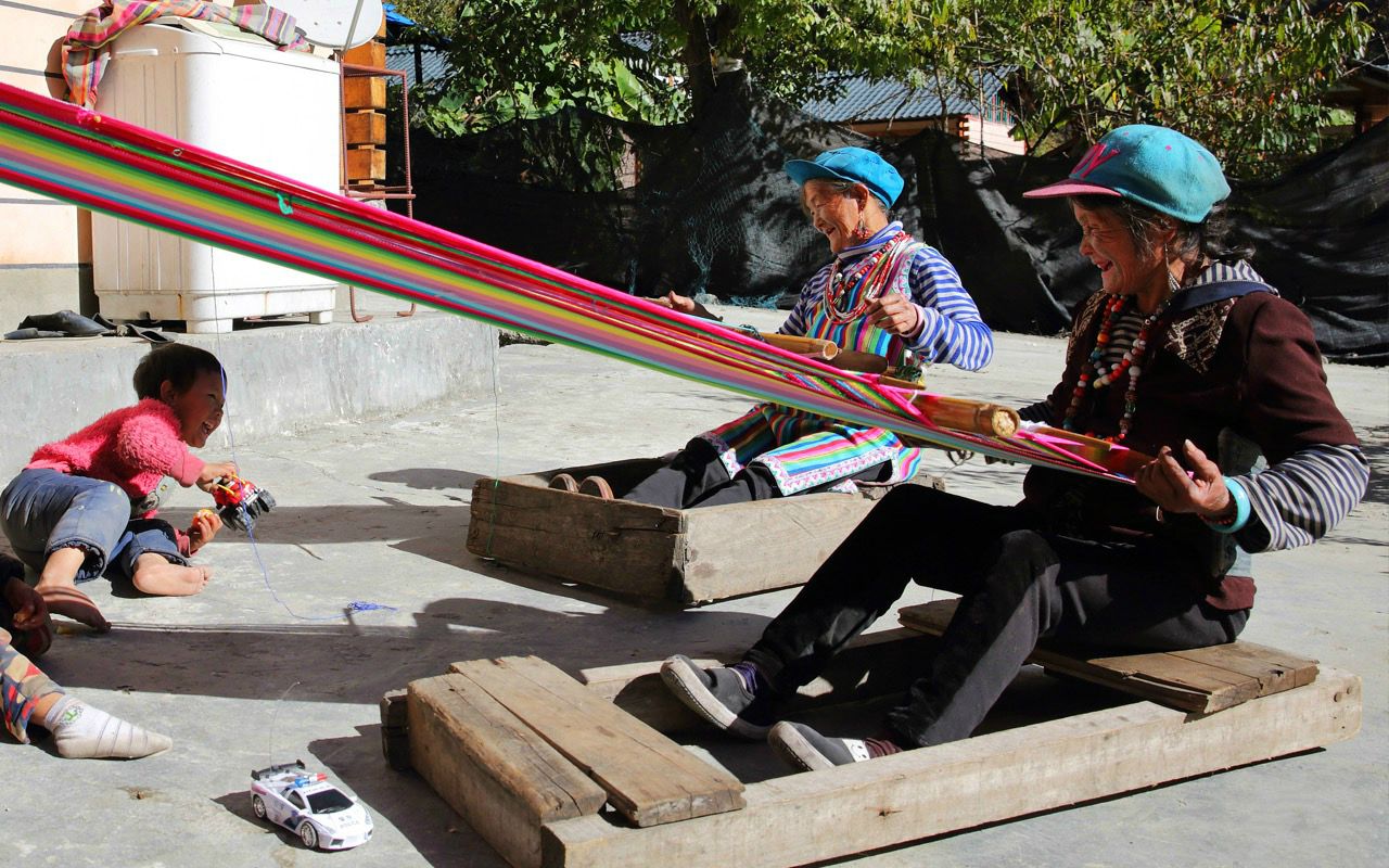 △獨龍族紋面女在織當地特有的獨龍?zhí)骸?/span>