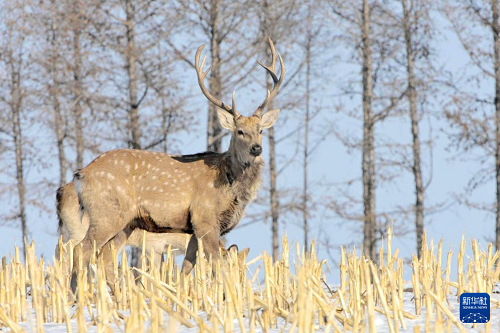 3月18日,野生梅花鹿在黑龍江仙洞山梅花鹿國(guó)家級(jí)自然保護(hù)區(qū)田間瞭望。(新華社發(fā) 王勇剛 攝)