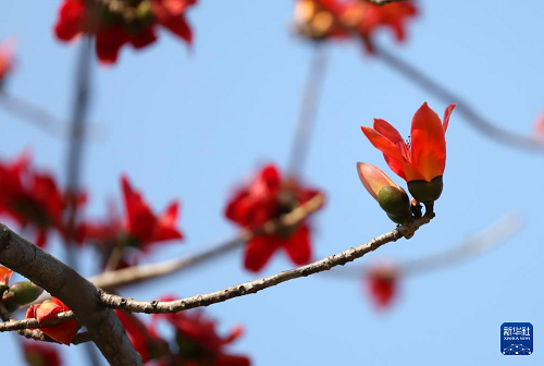 這是廣州街邊盛開的木棉花(3月19日攝)。(新華社記者 盧漢欣 攝)