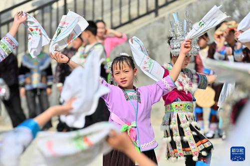 3月25日,廣西柳州市融水苗族自治縣桿洞鄉(xiāng)中心小學舉行石榴籽連籽·共慶“三月三”鄉(xiāng)村少年宮民族風情文化展演活動,各族少年通過蘆笙踩堂舞、山歌對唱、刺繡等豐富多彩的民俗文化活動,喜迎“三月三”傳統節(jié)日。