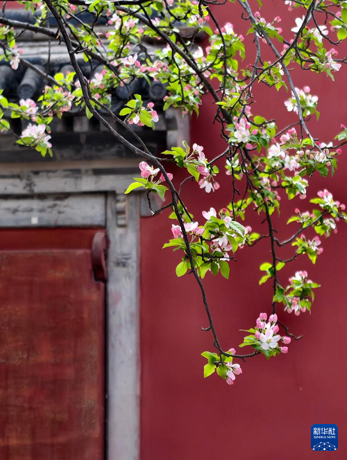 故宮慈寧宮花園內(nèi)海棠盛開(4月1日攝,手機照片)。(新華社記者 王海燕 攝)