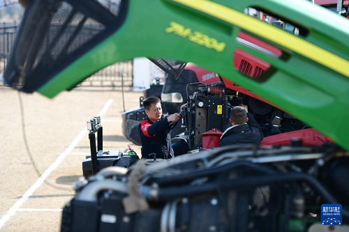 4月7日,在北大荒集團(tuán)北安分公司長(zhǎng)水河農(nóng)場(chǎng)有限公司第二管理區(qū)農(nóng)具場(chǎng),農(nóng)機(jī)技術(shù)人員在對(duì)農(nóng)機(jī)具開(kāi)展集中檢修。(新華社發(fā) 錢泊羽 攝)