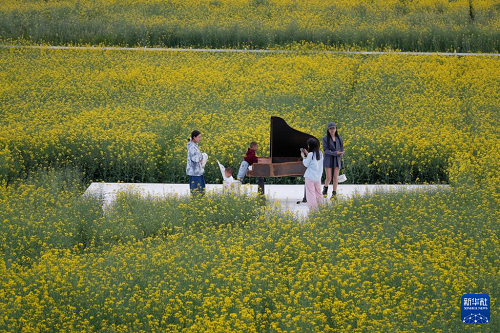 4月7日,游客在桐廬縣梅蓉村油菜花田內(nèi)游玩賞花。(新華社發(fā) 邱少煜 攝)