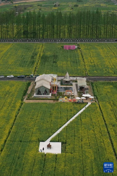 這是4月7日拍攝的桐廬縣梅蓉村油菜花田景色(無人機(jī)照片)。(新華社記者 黃宗治 攝)