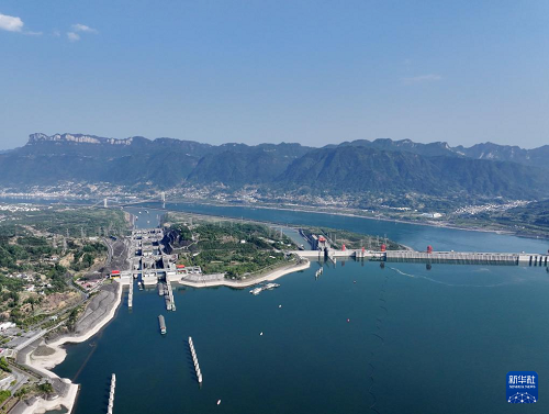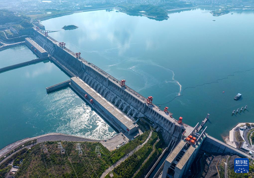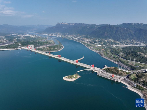 4月8日在湖北省宜昌市秭歸縣拍攝的三峽大壩(無(wú)人機(jī)照片)。(新華社發(fā) 王罡 攝)