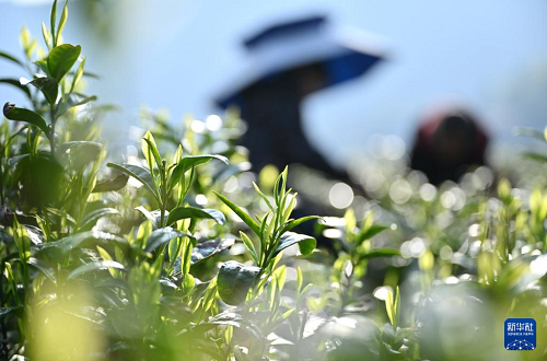 4月9日,茶農(nóng)在湖北省宣恩縣椒園鎮(zhèn)水田壩村的茶園里采摘白茶。(新華社發(fā) 陳緒開 攝)