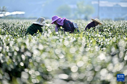 4月9日,茶農(nóng)在湖北省宣恩縣椒園鎮(zhèn)水田壩村的茶園里采摘白茶。(新華社發(fā) 宋文 攝)