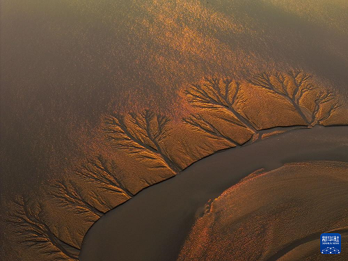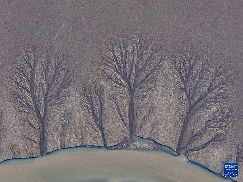 這是2024年10月29日在鹽城市東臺(tái)條子泥濕地拍攝的“潮汐樹(shù)”(無(wú)人機(jī)照片)。(新華社記者 李博 攝)
