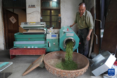 4月10日,在磐安縣尖山鎮(zhèn)烏石村,村民在翻動(dòng)茶青。(新華社記者 翁忻旸 攝)