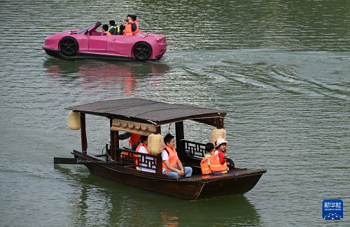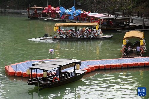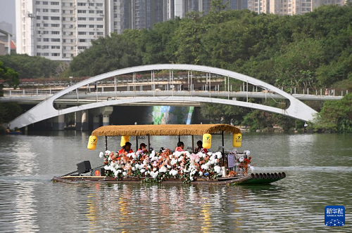 4月13日,廣西南寧市天氣晴好,不少市民利用周末來到民歌湖上泛舟游玩,享受明媚春光。(新華社記者 陸波岸 攝)
