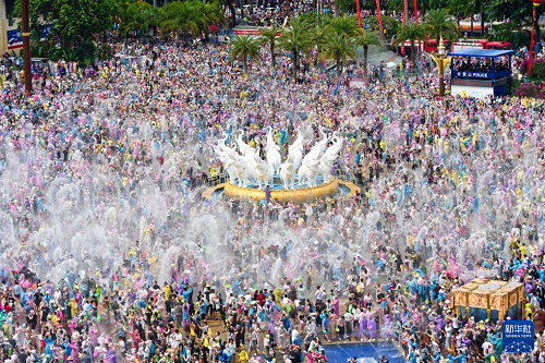 4月15日,云南多地舉行潑水節(jié)活動(dòng),各族群眾和游客用相互潑水的方式互送祝福,慶祝潑水節(jié)。