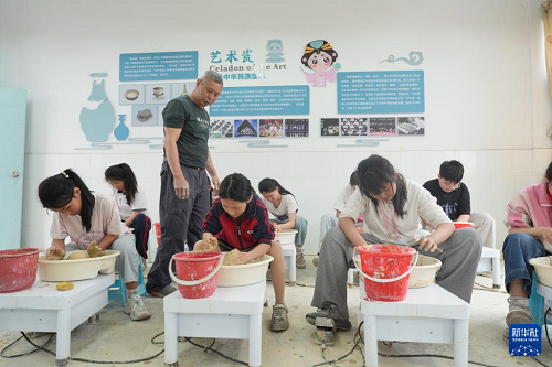 4月17日,施尚劍在慈溪市橋頭鎮(zhèn)橋南小學(xué)的陶藝課上教學(xué)。(新華社記者 翁忻旸 攝)