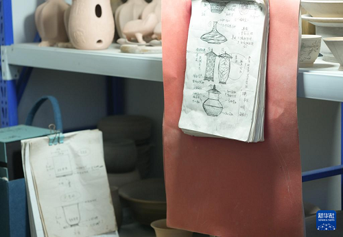 在慈溪市橋頭鎮(zhèn)的工作室里拍攝的施尚劍的設(shè)計手稿(4月17日攝)。(新華社記者 翁忻旸 攝)