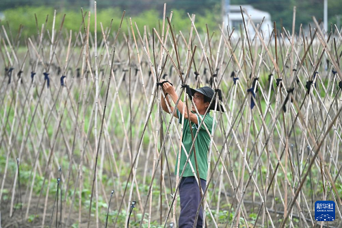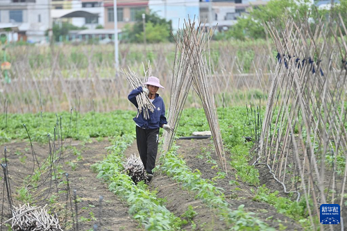 4月26日,在廣西柳州市柳江區(qū)三都鎮(zhèn)覺山村的蔬菜種植基地,村民在田間勞作。(新華社記者 黃孝邦 攝)