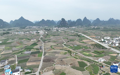 這是廣西柳州市柳江區(qū)三都鎮(zhèn)覺山村的蔬菜種植基地(無人機照片,4月26日攝)。(新華社發(fā) 鄭昌昊 攝)