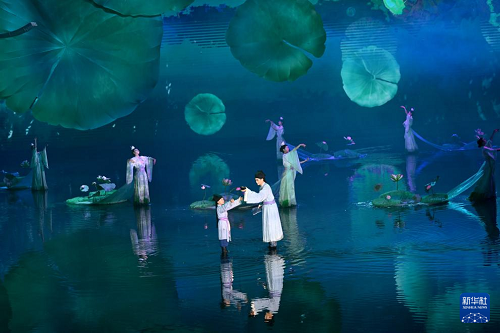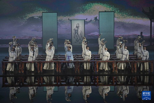 5月8日,大型文旅舞臺劇《月映武夷》演員在演出。(新華社記者 姜克紅 攝)