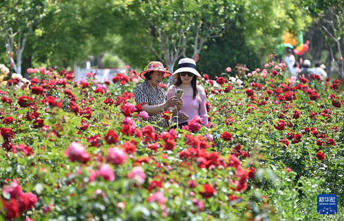 5月11日,游客在山東省棗莊市一景區(qū)內(nèi)賞花休閑。(新華社發(fā) 李志軍 攝)