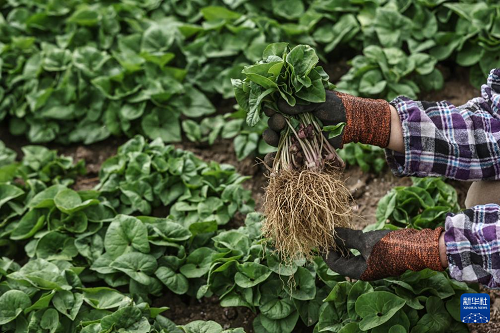 5月14日,在遼寧省撫順市新賓滿族自治縣,一家生產(chǎn)遼細(xì)辛企業(yè)的工作人員在種植基地檢查遼細(xì)辛的生長情況。(新華社記者 潘昱龍 攝)