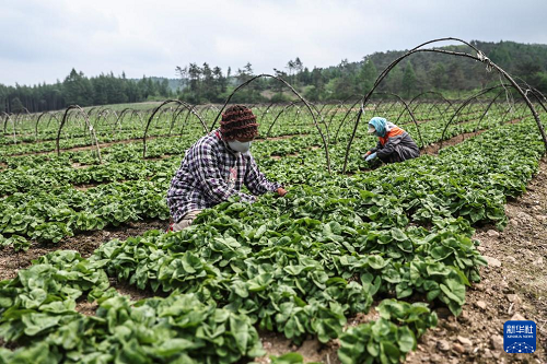 5月14日,在遼寧省撫順市新賓滿族自治縣,一家生產(chǎn)遼細(xì)辛企業(yè)的工作人員在種植基地進(jìn)行日常維護(hù)工作。(新華社記者 潘昱龍 攝)