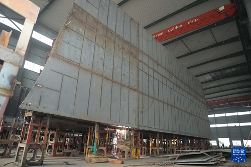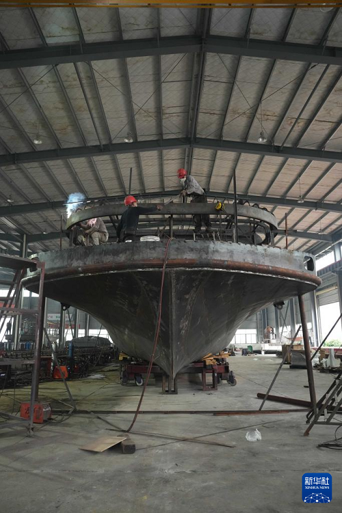 5月22日,工人在位于沅江市的湖南萬駿船舶有限公司生產(chǎn)船舶。(新華社記者 薛宇舸 攝)
