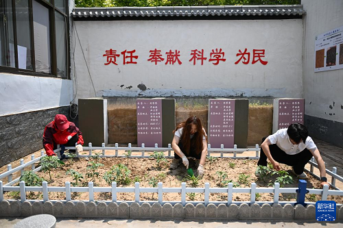 5月26日,河北省曲周縣傅莊科技小院的學(xué)生在小院的試驗田里工作。(新華社記者 牟宇 攝)