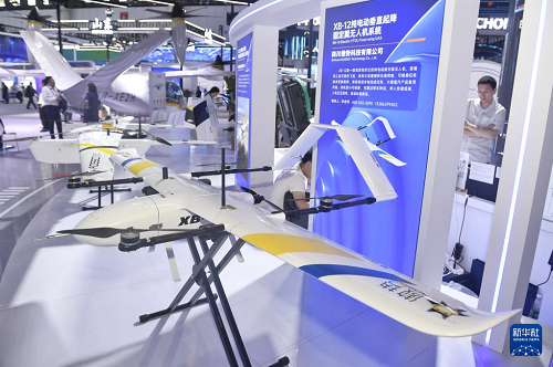 四川館展出的無人機(jī)(6月11日攝)。(新華社記者 劉坤 攝)
