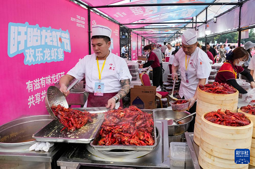 6月12日,第25屆盱眙龍蝦節(jié)歡樂龍蝦宴在江蘇省淮安市盱眙縣龍蝦節(jié)廣場(chǎng)舉行。為期三天的龍蝦宴預(yù)計(jì)消費(fèi)100噸小龍蝦。目前,盱眙縣有21萬人從事小龍蝦產(chǎn)業(yè),小龍蝦養(yǎng)殖面積98.5萬畝。