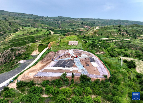 這是6月18日拍攝的宣化鄭家溝遺址一號(hào)積石冢(無(wú)人機(jī)照片)。(新華社記者 王曉 攝)