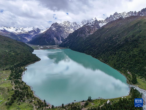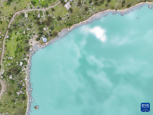 這是6月21日拍攝的玉龍拉措風光(無人機照片)。(新華社記者 王曦 攝)
