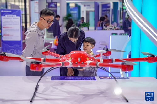 6月22日,觀眾在第9屆南博會上參觀一款無人機。(新華社發(fā) 彭奕凱 攝)