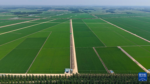 這是6月24日在黑龍江北大荒農(nóng)業(yè)股份有限公司八五六分公司第六管理區(qū)高標(biāo)準(zhǔn)農(nóng)田拍攝的水稻秧苗(無(wú)人機(jī)照片)。(新華社發(fā) 黃永興 攝)