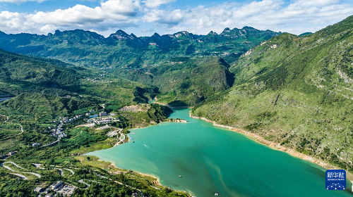 夏日時(shí)節(jié),貴州省六盤水市六枝特區(qū)牂牁江風(fēng)景名勝區(qū)草木蒼翠、江水碧藍(lán),青山綠水與道路村莊組成一幅幅美麗畫卷。