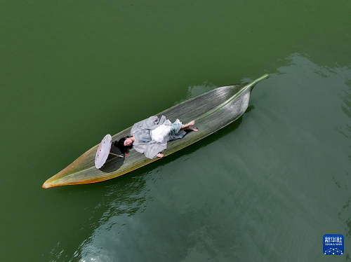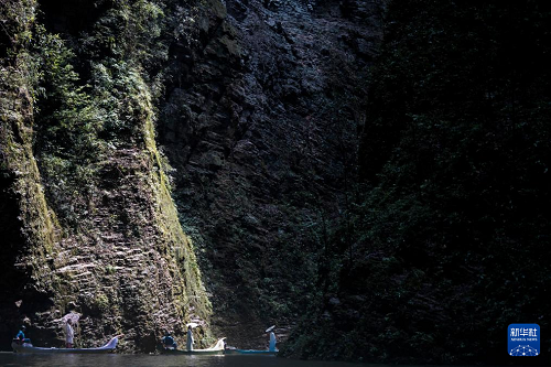 7月9日,游客在鶴峰縣屏山峽谷體驗游船項目。(新華社記者 伍志尊 攝)