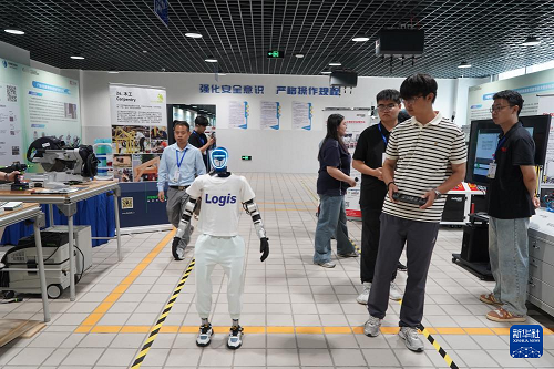 7月15日,在第二屆江蘇青年技能周活動期間,技術(shù)人員在江蘇省技工教育成果要素展上操控人形機(jī)器人。(新華社發(fā) 劉臻睿 攝)